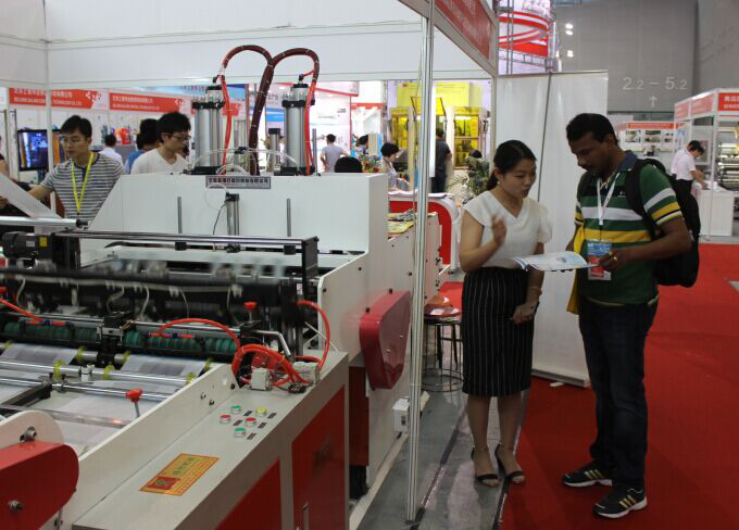 In this exhibition we show our new bag making machine and blown film machine for T-shirt bags. The blown film machine with screw diameter #45. The output near 50 kg/hour with high quality film. For good quality we use Taiwan header and screw. For the good quality and output this machine win the high attention of customers. It is especially suitable for LDPE and to make t-shirt bags.
